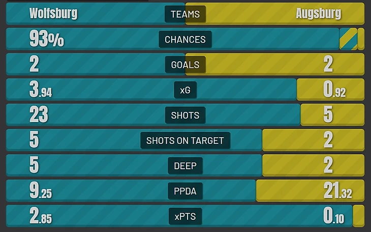 • В этой игре у «Вольфсбурга» было больше ударов, чем в любом другом матче сезона (23).