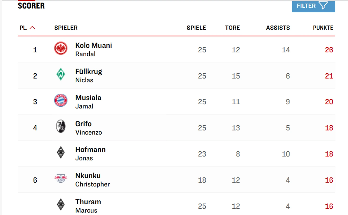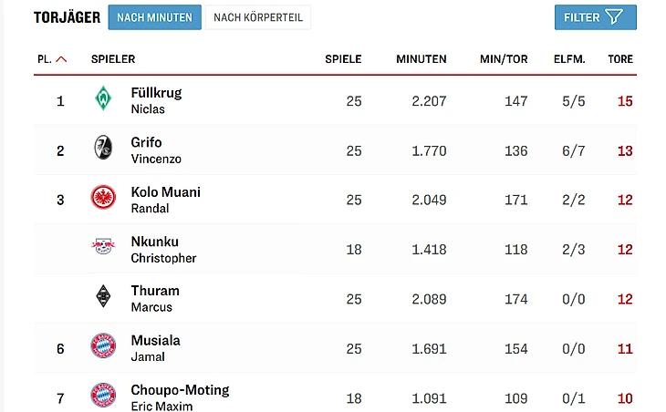 • Коло Муани — лучший бомбардир Бундеслиги в 2023 году, забивший уже семь голов в этот календарный период.