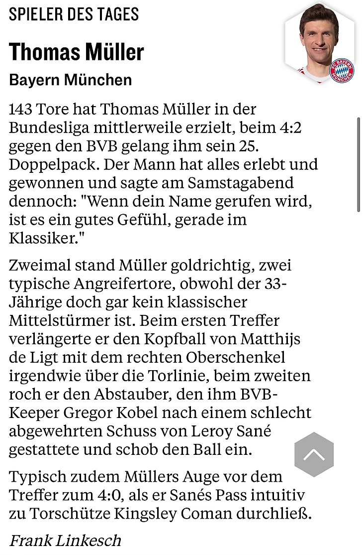 • Мюллер оформил свой третий дубль в Der Klassiker. Только Роберт Левандовски (8) и Герд Мюллер (4) делали это чаще в матчах с «Боруссией».