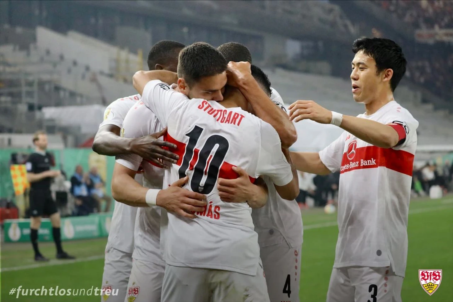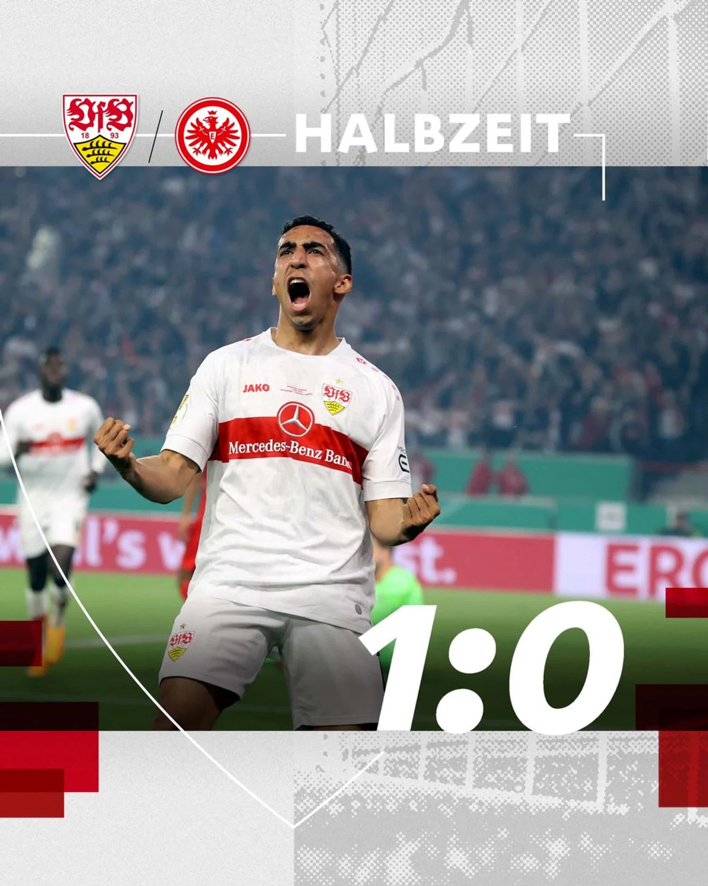 Яркий и насыщенный событиями матч подарили нам «Штутгарт» и «Айнтрахт» в полуфинале Кубка Германии! С первых минут команды показали, что настроены на серьёзную борьбу - судья Даниэль Шлагер уже в первые 9 минут вынес три жёлтые карточки игрокам. В начале матча «Штутгарт» смотрелся увереннее опаснее гостей, что привело к забитому голу на 19 минуте - Джошуа Вагноман прорвался по правому флангу и прострелил в штрафную на Тиагу Томаша, который уверенно отправил мяч в сетку ворот Кевина Траппа.