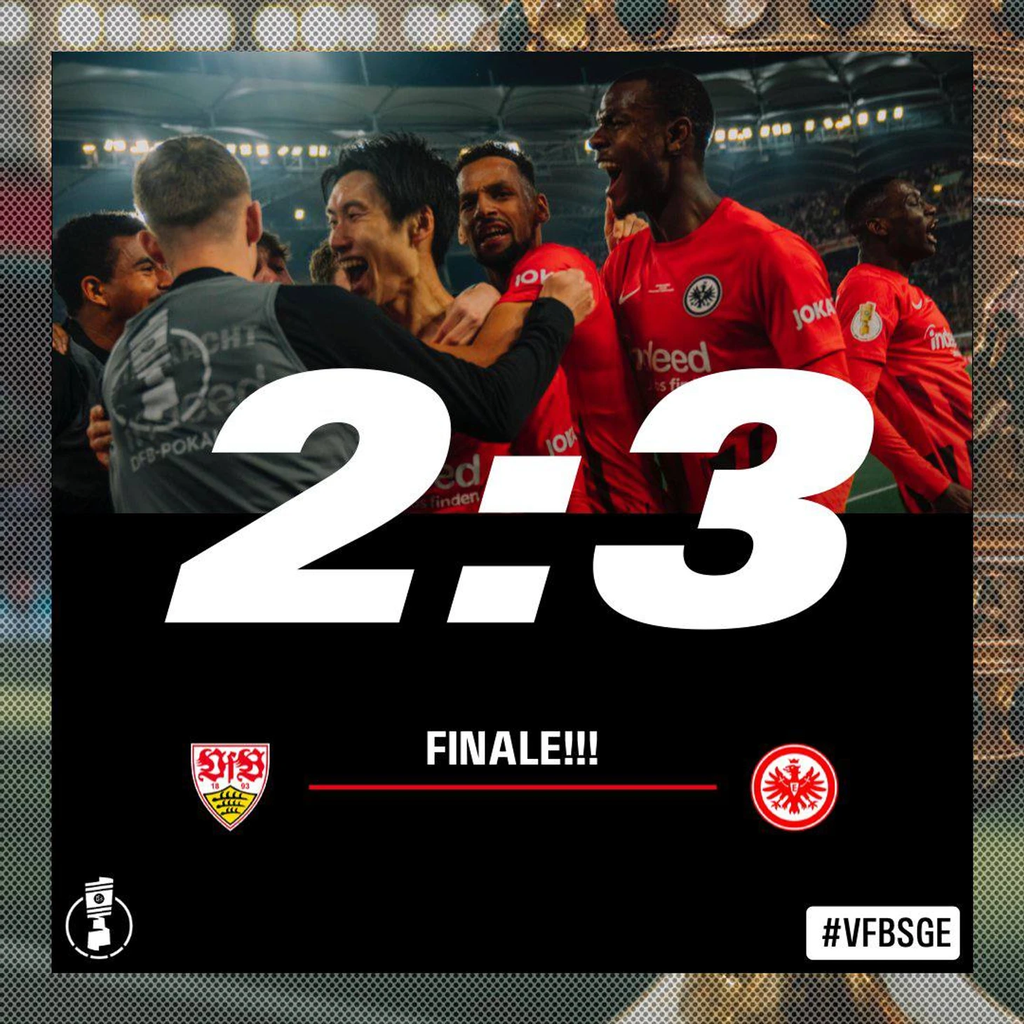 Концовка матча выдалась действительно жаркой: на 85 минуте Борна Соса получил вторую жёлтую карточку и «Штутгарт» остался в меньшинстве. Даже несмотря на это, «швабы» продолжили давить и искать моменты, чтобы сравнять счёт. И вдруг, на последней минуте дополнительного времени «Айнтрахт» заставили врасплох - во время исполнения углового судья рассмотрел потенциальную игру рукой в штрафной «Айнтрахта», но после проверки VAR оказалось, что игры рукой не было и пенальти в ворота «орлов» не был назначен. Боевой матч завершился победой «Айнтрахта» со счётом 3:2! «Штутгарт» впечатляюще сыграл, но «Айнтрахт» заслужил победу, мощно проведя второй тайм.
