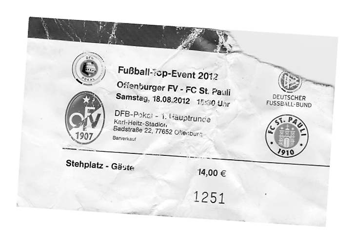Прошло пять лет с моей первой игры — победы «Санкт-Паули» над леверкузенским «Байером» со счетом 1:0 в кубке Германии в тот жаркий августовский день. Поэтому, кажется, уместно отметить юбилей, посетив еще одну игру на точно таком же этапе соревнования. В 2007 году, только что получив повышение в классе из Регионаллиги, «Санкт-Паули» был аутсайдером, и поэтому ему было гарантировано домашнее противостояние с командой из двух высших дивизионов. На этот раз, как постоянные обитатели Второй Бундеслиги, роли поменялись местами, и нам выпало играть на выезде против «Оффенбурга», одной из самых низко расположенных команд в турнире. Они обеспечили себе это место, выиграв кубок Южного Бадена в конце прошлого сезона со счетом 2:0 над «Линкс». Выступая в Оберлиге, пятом эшелоне немецкого футбола, они настолько ничтожны, что на несколько мгновений после жеребьевки их спутали в Твиттере с более известным «Кикерс Оффенбах» из Третьей лиги.