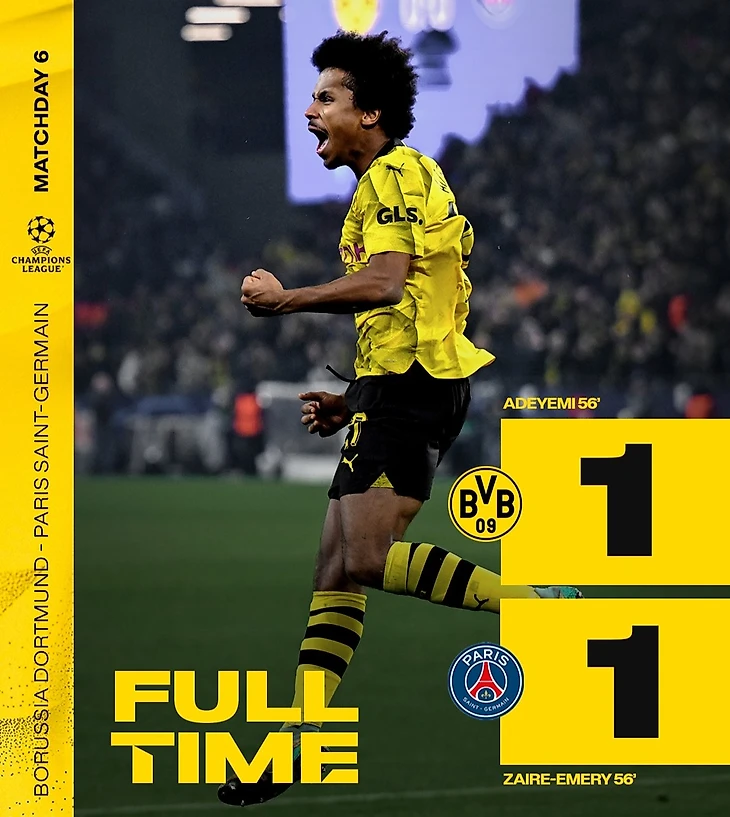 К концу первой половины стало известно, что в параллельном матче «Ньюкасл» забил гол «Милану». А через пять минут после перерыва положение «ПСЖ» ещё больше ухудшилось. Фюллькруг проявил завидное хладнокровие, получив мяч на углу вратарской, и покатил на Адейеми. Юному вингеру не составило труда открыть счёт с пяти метров.