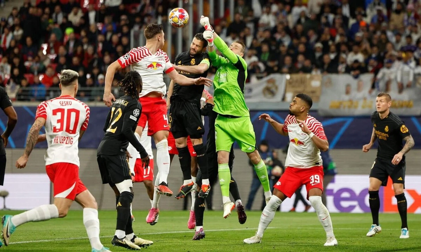 В паре «Реал» – «РБ Лейпциг» испанский клуб выглядел явным фаворитом. К матчу в Германии команды подходили в разном состоянии, но что-то общее между ними все же было – у обеих команд достаточно проблем. У «Лейпцига» вообще нет отсутствующих, но немецкий клуб ужасно начал вторую половину чемпионата – одна победа и три поражения в пяти матчах, и «быки» опустились на пятое место в чемпионате. У «Реала» с результатами все в порядке, но травмы: мало того что в составе остался всего один профильный центральный защитник – Начо, – так еще и Джуд Беллингем получил повреждение. В общем, матч обещал быть интересным. Так и получилось. Команды начали активно. Уже на второй минуте «Лейпциг» организовал гол. После подачи углового мяч подобрал Шлагер, который то ли бил по воротам, то ли так простреливал, но попал прямо в голову Шешко. Однако гол в итоге отменили: Беньямин не был в офсайде, но вот Хенрихс стоял за спиной голкипера, и судьи посчитали, что он влиял на эпизод. Момент вызвал множество споров, но итог уже не изменить.