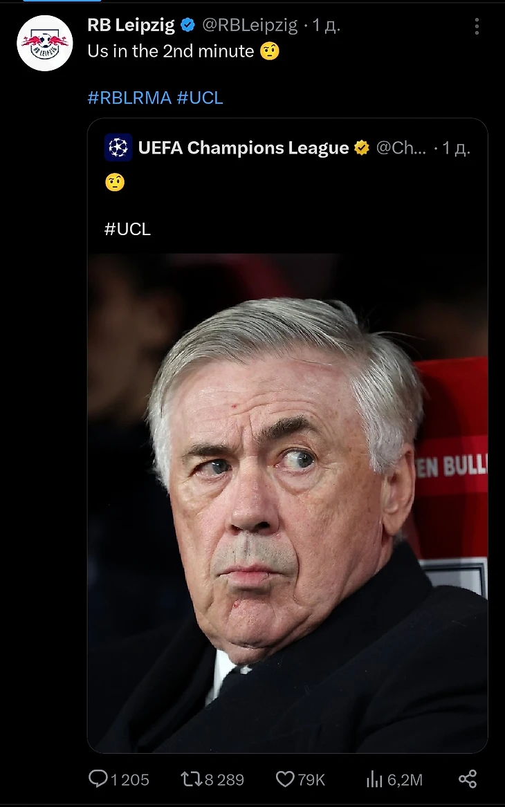Спустя пару минут убойный момент был у Дани Ольмо, но, как мы уже писали, Лунин все тащил. «Лейпциг» создал более чем достаточно моментов на гол, но мяч совсем не летел в ворота. 0:1 – «Лейпциг» играл хорошо, но не хватило реализации. Ситуация перед ответным матчем очень непростая.
