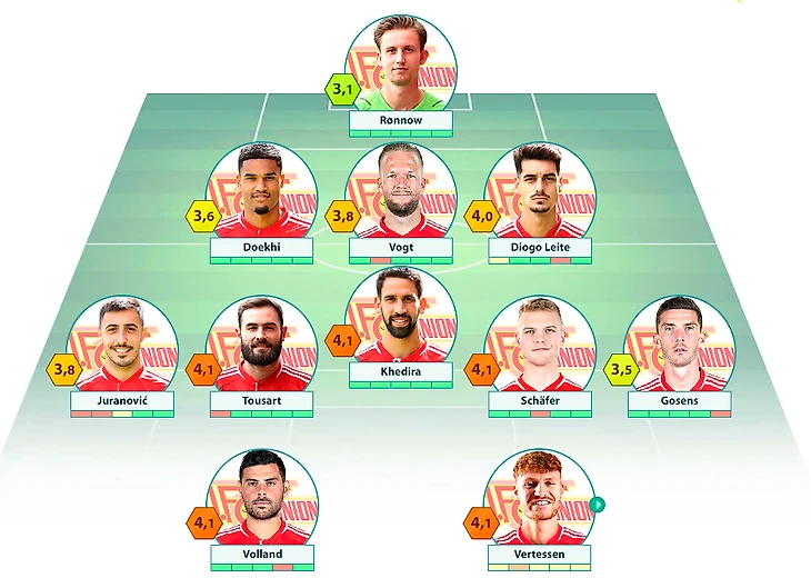 «Унион» Берлин: Rønnow - Doekhi, Vogt, Leite - Khedira (c) - Juranović, Tousart, Schäfer, Gosens - Volland, Hollerbach