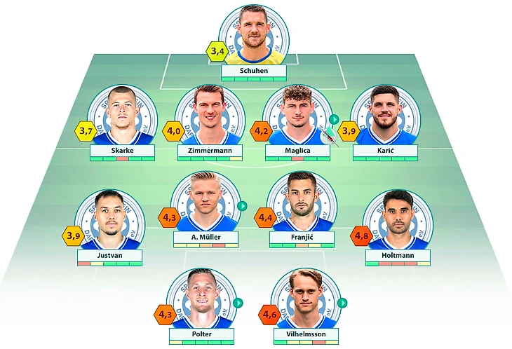 «Дармштадт 98»: Schuhen - Zimmermann, Gjasula, Maglica - Skarke, Franjić, Kempe (c), Karić - Justvan, Holtmann - Polter
