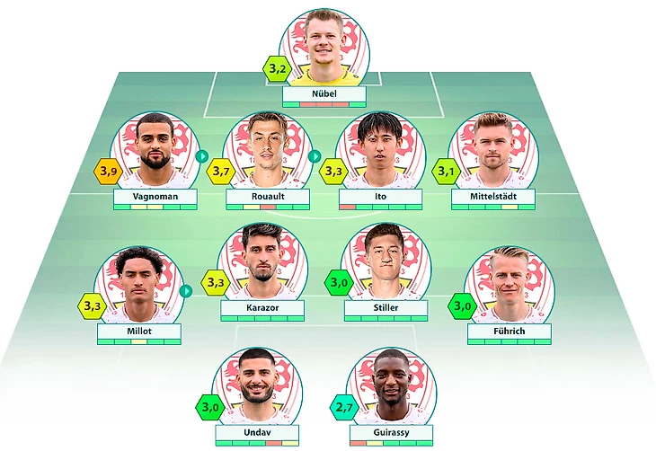 «Штутгарт»: Nübel - Vagnoman, Rouault, Ito, Mittelstädt - Millot, Karazor, Stiller Führich - Undav, Guirassy
