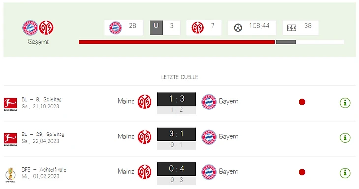 Майнц 05» выиграл все три последних матча у Баварии во второй половине сезона, но все дома — в Мюнхене было шесть поражений подряд и пропущено 29 голов.