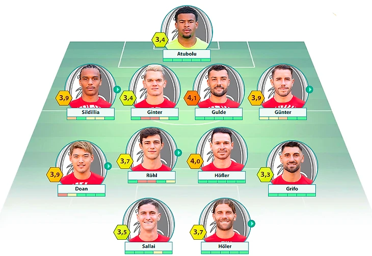 «Фрайбург»: Atubolu - Sildillia, Ginter, Gulde, Günter (c) - Eggestein, Höfler - Dōan, Sallai, Grifo - Höler