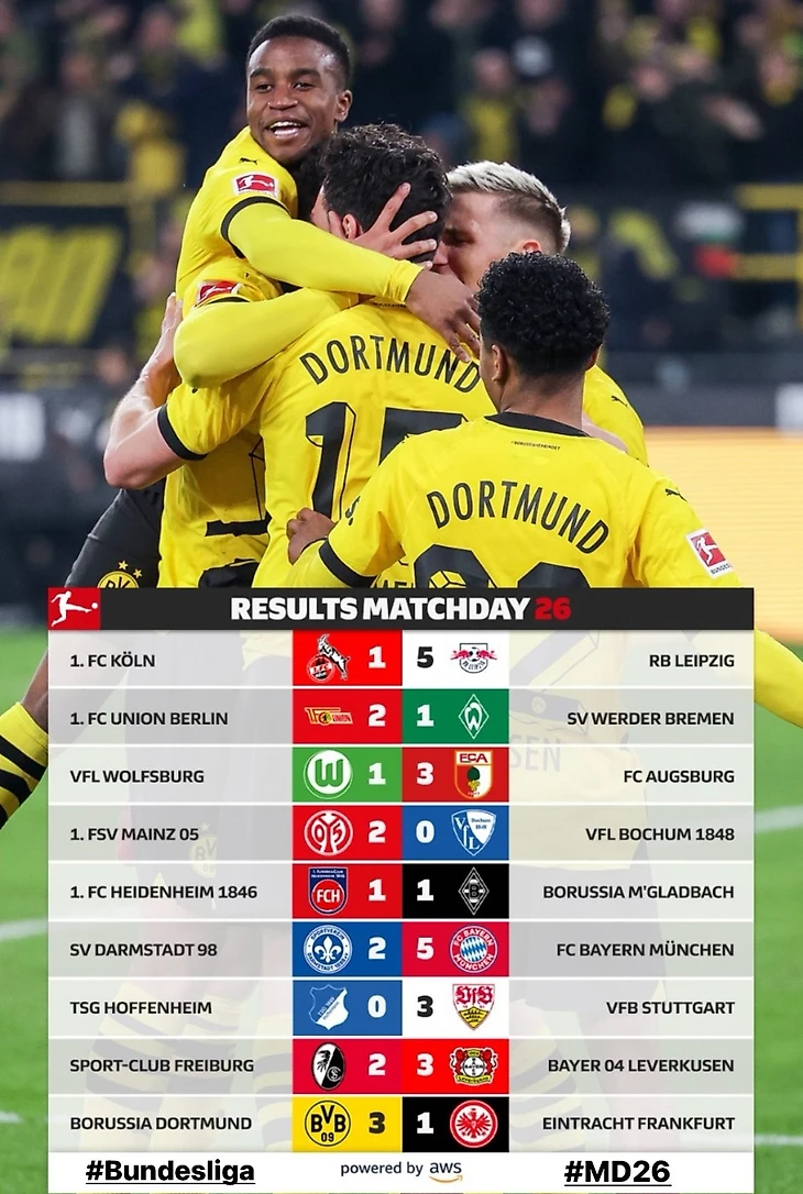В 26-м туре Бундеслиги неожиданных результатов в общем-то не наблюдается, однако менее интересным тур от этого не стал. В пятницу «РБ Лейпциг» разорвал несчастный «Кёльн», в субботу почти тоже самое «Бавария» проделала с «Дармштадтом», в воскресенье обе игры тоже оказались весьма результативными. «Вольфсбург» после поражения от «Аугсбурга» уволил Ковача, на его место назначен Ральф Хазенхюттль, а всеми обожаемый Кристиан Штрайх объявил об уходе летом из «Фрайбурга». Все чемпионаты уходят на двухнедельную паузу - время игр сборных!