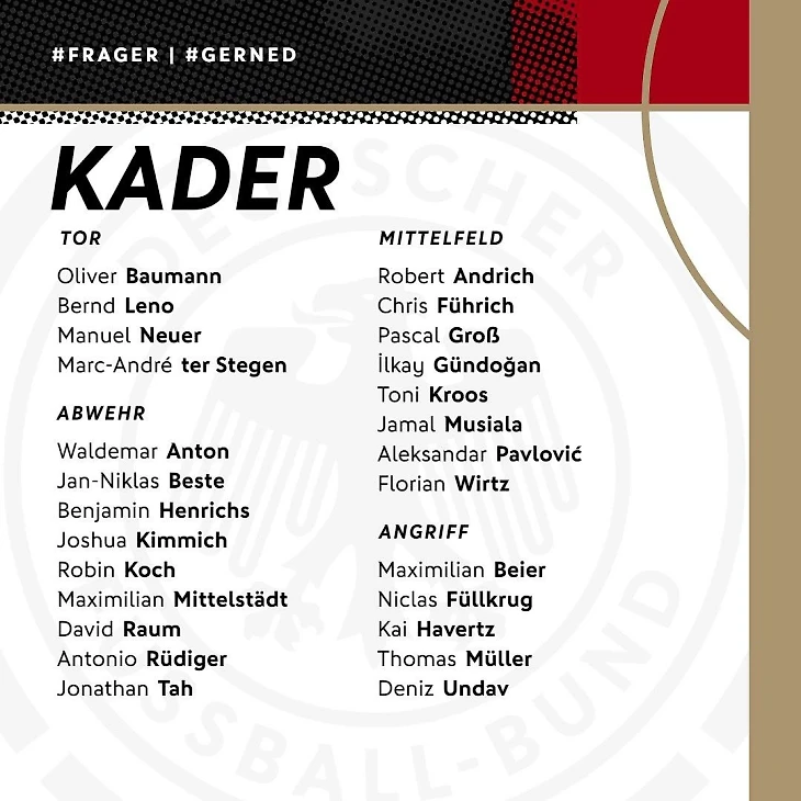 Состав сборной Германии на ближайшие товарищеские матчи.