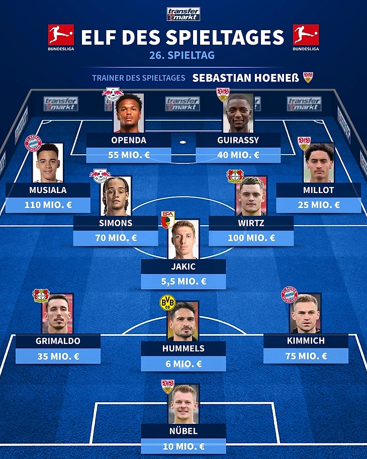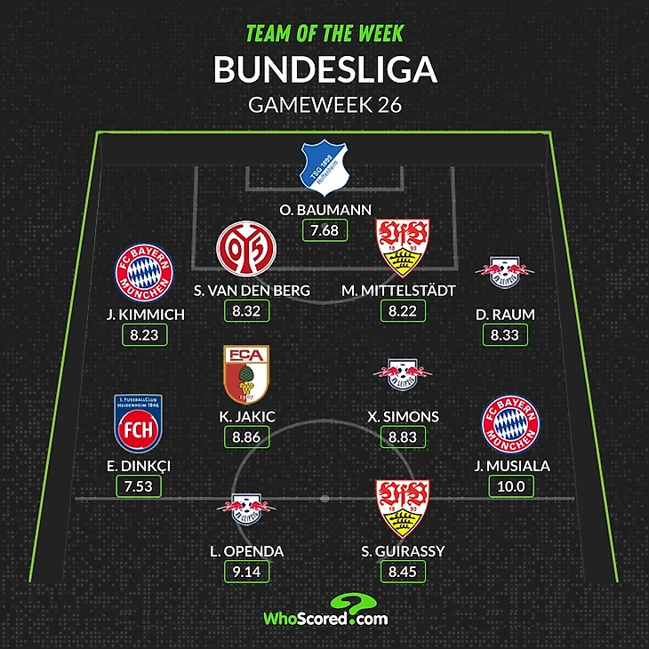 «Швабы», в свою очередь, добыли 7-ю победу в восьми последних турах, выдав свой лучший отрезок за 3 года. И набрали рекордные для клуба 56 очков по итогам 26 туров, уйдя на последний международный перерыв в сезоне с минимум 7 пунктами отрыва от ближайшего преследователя за Лигу чемпионов.