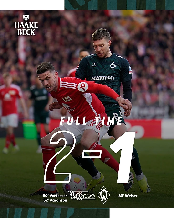 «Унион» наконец-то прервал свою безвыигрышную серию, одолев «Вердер». Берлинцы сразу после перерыва забили дважды в течение двух минут, позволив сопернику лишь раз поразить свои ворота.
