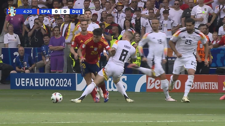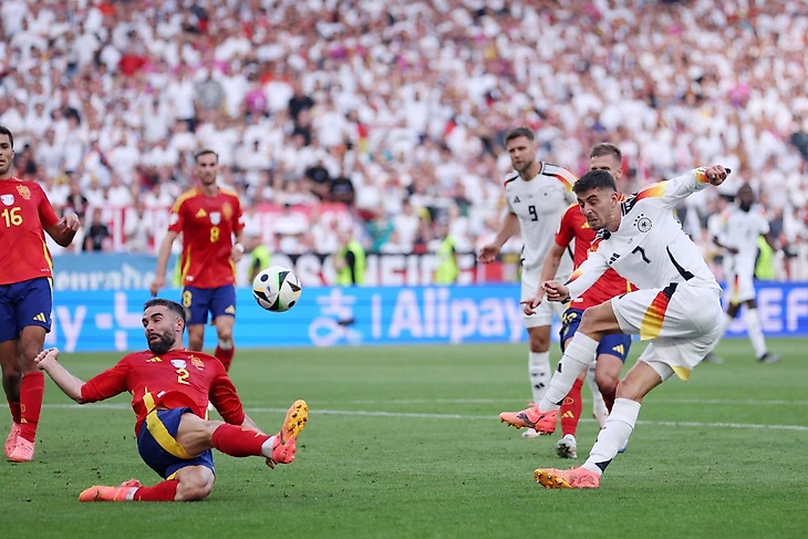 Германия вновь понеслась исправить ситуацию. Мяч после ударов Мусиалы, Киммиха и Фюллькруга так и не оказался в сетке. В самой концовке Карвахаль за грубость на Джамале получил вторую желтую и покинул поле. Дани не сыграет в полуфинале Евро, но это уже будут заботы Де ла Фуэнте.
