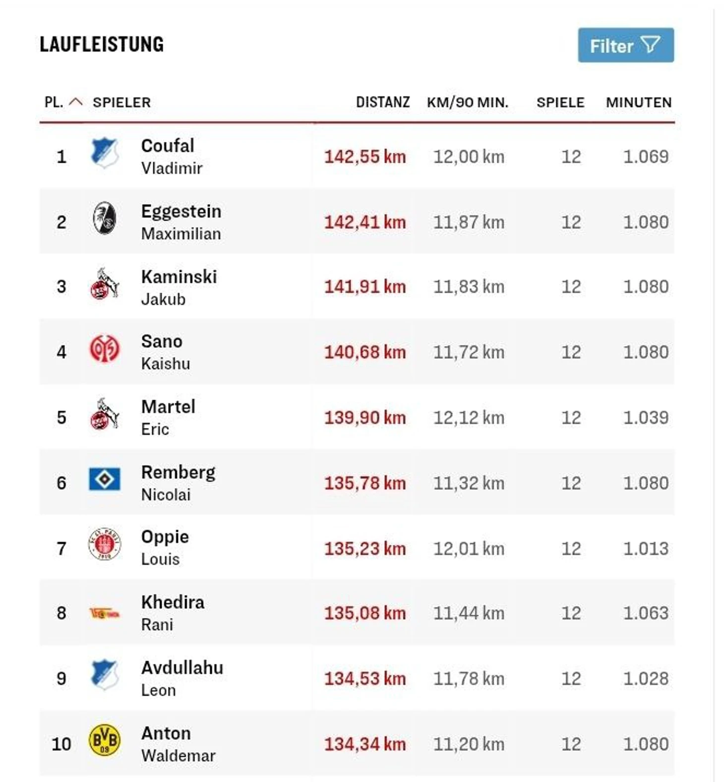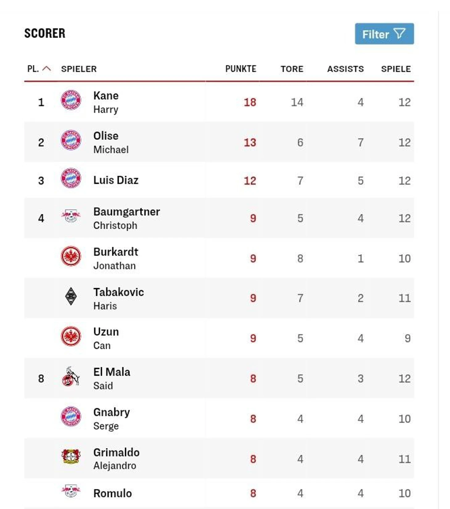 Отдельно стоит отметить великолепную форму Дениза Ундава, который за этот период забил 8 голов и отдал 2 голевые передачи, уже вписав себя в клубные рекорды. А также претендует на лучшего игрока ноября в Бундеслиге.