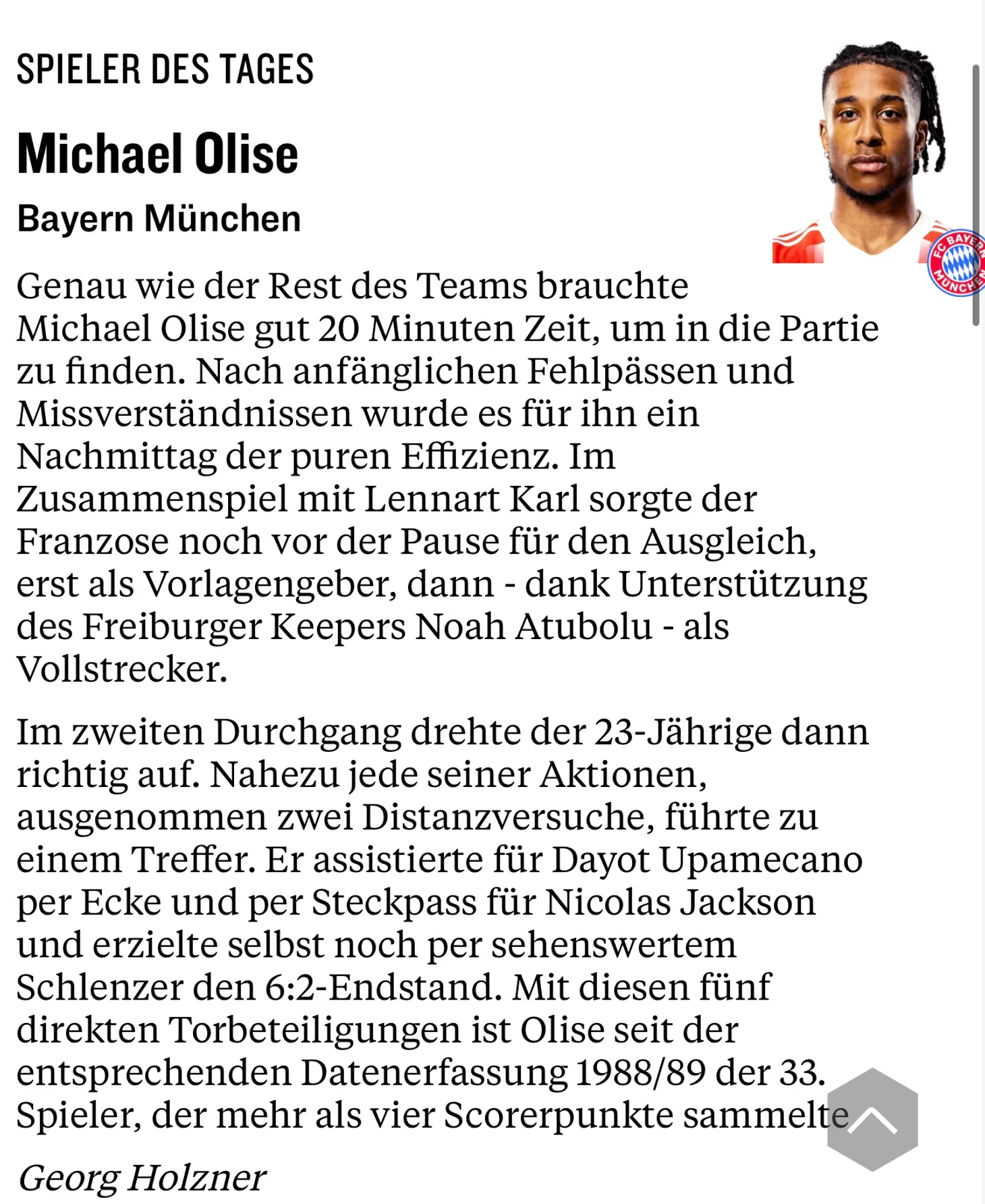 После перерыва на матчи сборных в 11-м туре в гости в Мюнхен приехал «Фрайбург». И тоже удивил: к 17-й минуте счет был 2:0 в пользу гостей. Дальше, начиная с 22-й минуты, забивала только «Бавария». В итоге встреча завершилась со счетом 6:2, но вопросов по состоянию команды Компани задали очень много.