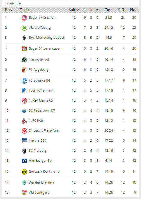«Бавария» побеждает «Хоффенхайм» и отрывается от преследователей; Марко Ройс вновь травмирует голеностоп и выбывает до конца первого круга; «Вольфсбург» прерывает серию из шести побед, уступая «Шальке»; Ян Соммер пропускает три мяча в одной игре; «Вердер» проигрывает в Северном дерби, а Виктор Скрипник подписывает контракт до 2017 года; Армин Фе пишет завяление по собственному желанию и уходит из «Штутгарта»