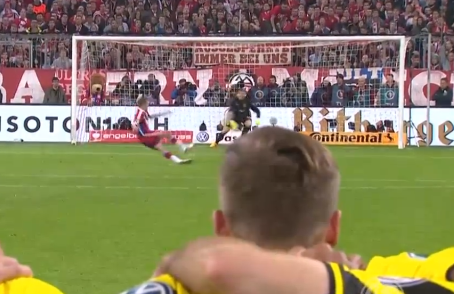 В серии пенальти с мюнхенцами произошло нечто слабо поддающееся объяснению. Лам и Алонсо поскользнулись друг за другом, отправив мяч в одну и ту же точку на трибунах. Гетце пробил крайне удобно для вратаря, а Нойер сотряс перекладину. «Бавария» впервые в истории не забила ни одного послематчевого пенальти.