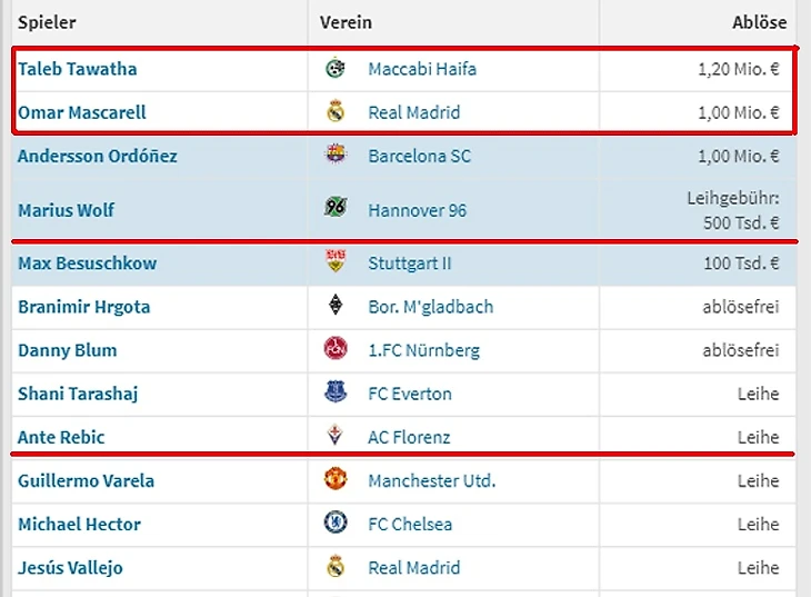 В статье использованы материалы transfermarkt.de и 11freunde.