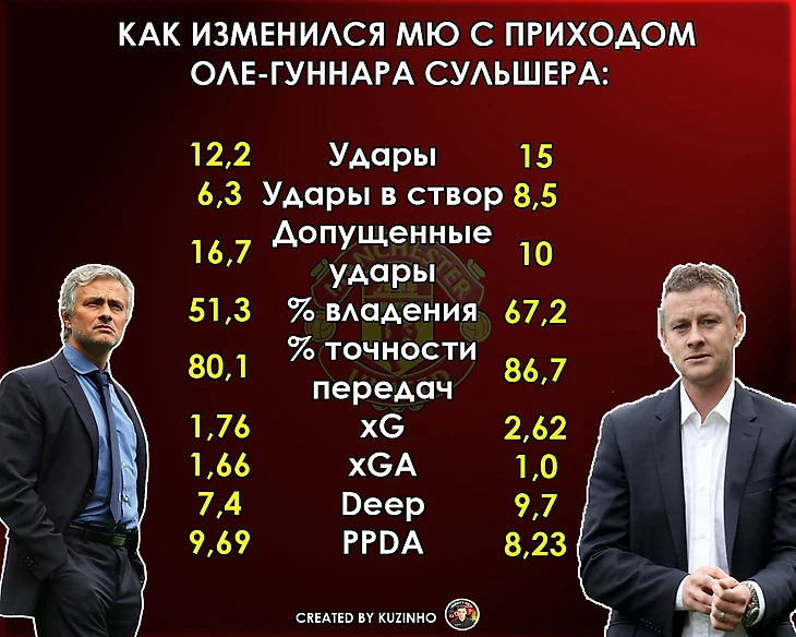 Манчестер Юнайтед прямо сейчас играет с Редингом в рамках 1/32 финала Кубка Англии и практически гарантировано окажется в следующем раунде. Сейчас Дьяволы в таком состоянии, что какой бы состав Сульшер не выставил на это противостояние (а он далек от основного) – сопернику все равно не поздоровится. Вашему вниманию показательные цифры, как изменился МЮ под руководством Оле Гуннара.