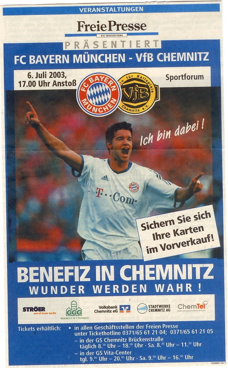 За несколько дней до спасения клуба из Гамбурга «Бавария» сделала еще одно доброе дело. Два юных футболиста академии «Хемница», Рик (11 лет) и Рой (7 лет) Фурхнеры, написали Михаэлю Баллаку, который начинал свою карьеру в Хемнице, письмо с просьбой провести матч с их клубом и спасти его от банкротства. Вскоре из секретариата «Баварии» пришел отказ – письмо так и не попало в руки Хёнесса или Баллака. Но мальчики не сдались и приехали вместе с родителями на Зэбенерштрассе в декабре 2002 года, чтобы передать письмо лично в руки Михаэлю. 6 июля «Бавария» почти в полном составе приехала в Хемниц. Матч закончился со счетом 11:1 в пользу мюнхенцев, а стадион собрал 15000 зрителей.