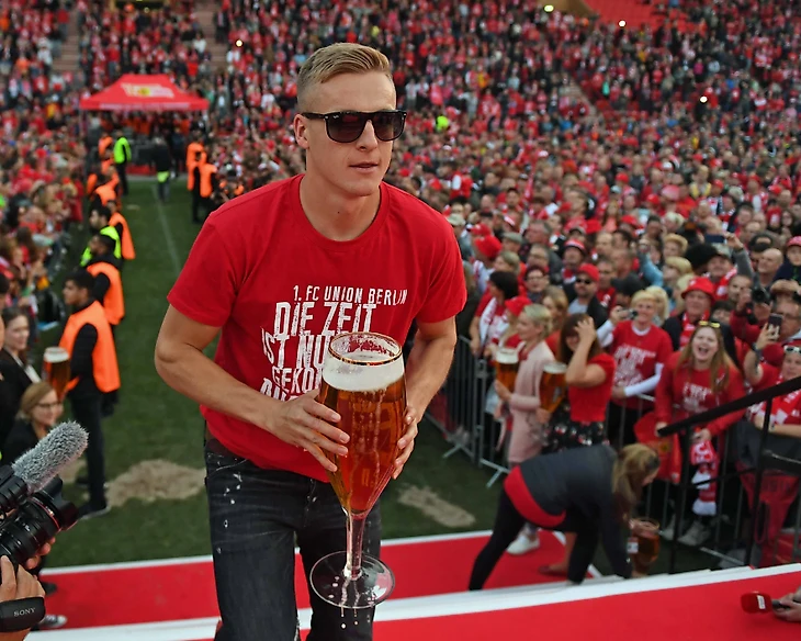 Феликс рассказывает, что после выхода «Униона» в бундеслигу в прошлом году они праздновали три дня подряд. «Я уверен, что каждый пил тогда. Через 10 секунд после свистка было 20000 человек на поле. Праздновать вместе с фанатами это просто невероятно», – делится впечатлениями Феликс. Через два дня после матча со «Штутгартом» они были на приеме у бюргермейстера в Берлине в красной ратуше. Почти все были все еще пьяными.