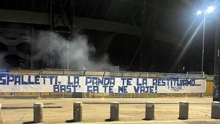 Весной нынешнего года за несколько туров до завершения чемпионата «Наполи» потерял шансы на Скудетто. На стадионе появился баннер: «Машину мы тебе вернём, главное, чтобы ты на ней уехал».
