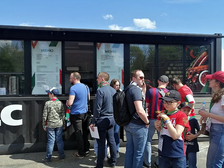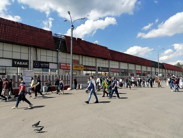 16 мая. Болельщики идут на игру на фоне ТЦ «Радуга».