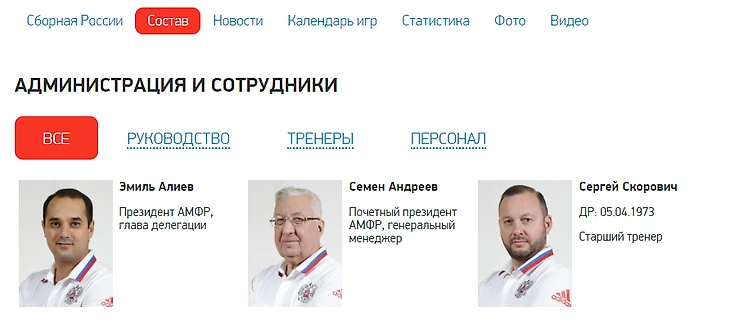 Национальная сборная по мини-футболу / Фото: АМФР (скриншот с сайта)