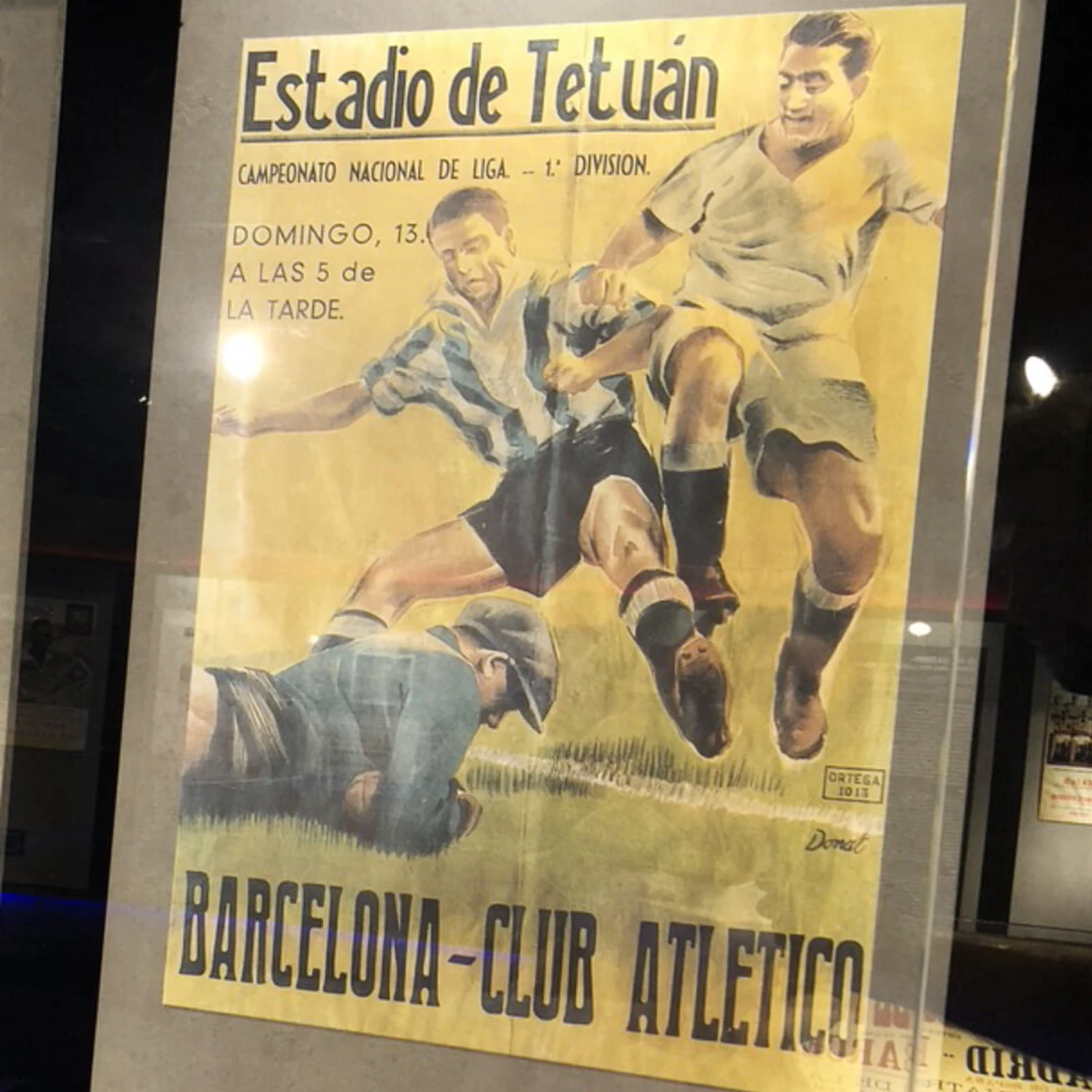 Другой занятный плакат – возможно, единственный физический памятник клубу «Атлетико» из Тетуана. Ребята провели в Ла Лиге всего один сезон (тогда же они и сыграли с «Барсой»), а в 1956-м, когда Марокко получил независимость от Испании, игроки и руководители «Атлетико» бежали из Тетуана в Сеуту, крошечный испанский анклав напротив Гибралтара. Там «Атлетико» превратился в «Сеуту», а в 2012-м погряз в долгах и исчез.