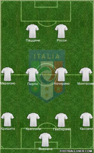 Состав: Вивиано, Де Сильвестри, Кьеллини, Антонелли, Бонуччи, Де Росси (Паломбо, 76), Монтоливо, Пирло, Кассано, Росси (Квальярелла, 58), Джилардино (Паццини, 58).