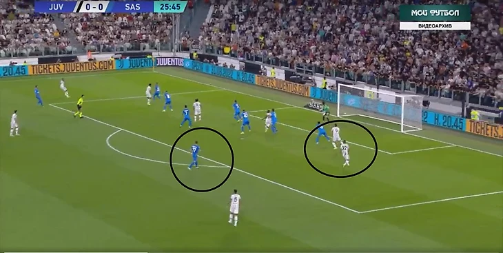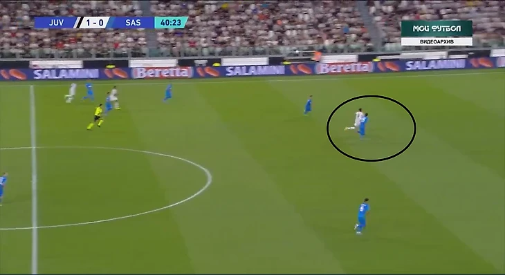 Первый гол родился из перегруза левого фланга и гениальности Ди Марии. Как это работало. На лево стянулись три игрока Юве: Куадрадо, Сандро и Локателли. Все это вылилось в ситуацию, в которой Сандро дали свободно подать. При этом у Сассуолло недоработал Кирьякопулус, и на дальней штанге образовалась ситуация 2в1. А дальше Ди Мария, отскок и гол.
