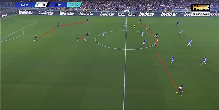 Главным изменением на поле после игры с Сассуоло стало отсутствие Ди Марии и появление Костича. Это повлекло за собой целую цепочку изменений. Если в предыдущем матче аргентинец с колумбийцем миксовали позиции, как их душе было угодно, то в матче c Сампдорией все было жестко. Куадрадо справа, Костич слева. И никак иначе.