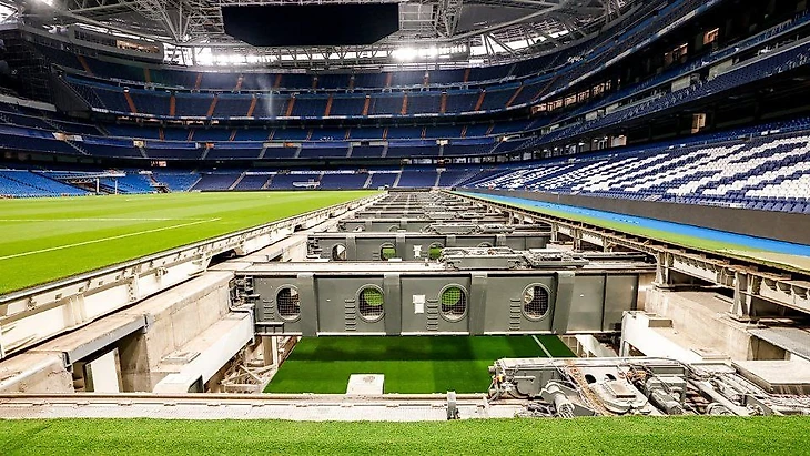 Пандемия, заставившая проводить матчи без зрителей, предоставила уникальную возможность ускорить работы по созданию гипогея – подземного хранилища для футбольного поля, разделенного на шесть панелей. Это позволяет использовать стадион для концертов, конференций и других мероприятий, поднимая газон только для футбольных матчей. Система полива, освещения и поддержания температуры гарантирует идеальное состояние газона вне зависимости от использования стадиона. «Реал» стал пионером в этом решении, которое может найти применение и на других стадионах мира.