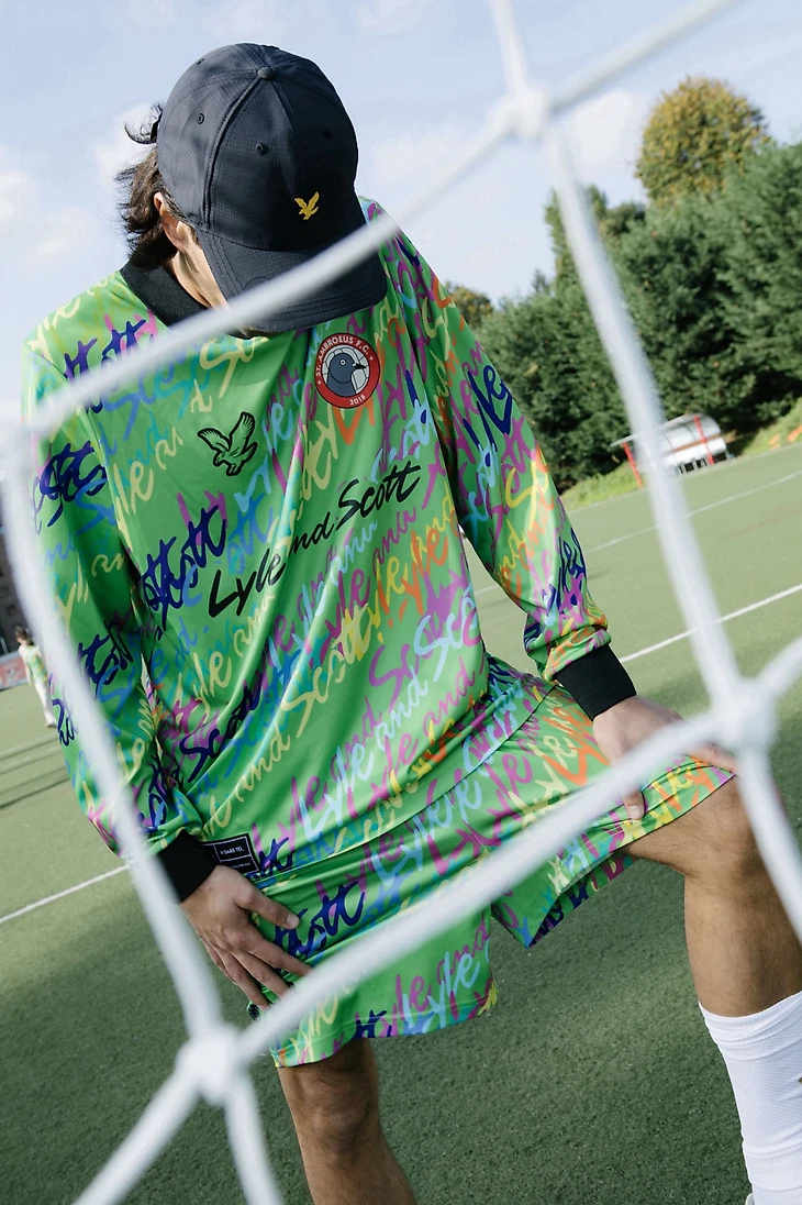 Форма вратаря – дань уважения футбольной классике 90-х годов – сочетает в себе наследие с элегантным дизайном. Логотип St. Ambroeus FC (с изображением голубя) размещен рядом с логотипом Lyle & Scott.