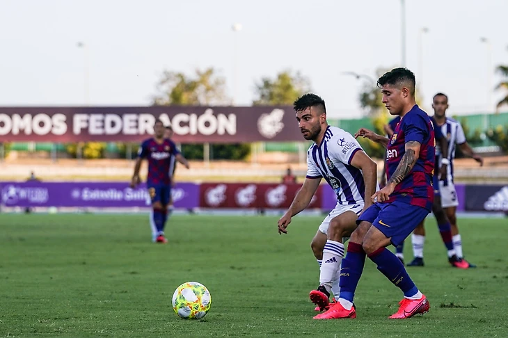 Стартовый состав в отсутствии вышеуказанных игроков естественно претерпел изменения. В защите вышла пара Мингеса - Куэнка. В центр поля к Мончу и Орельяне добавился Илайш. Острие атаки занял Рей Манай, а по флангам помогали Конрад и новичок из "Юве", ни разу ещё не игравший за филиал Матеуш. Начало встречи оказалось на удивление "огненным". Уже в самом дебюте, окрылённый уходом своего конкурента (Гийем Хайме) по флангу в защите Морер рванул по бровке, вошёл в штрафную и выполнил сильный прострел, который в итоге конвертировался в забитый мяч. Вратарь сумел справиться с рикошетом, но Конрад оказался расторопнее всех и сумел протолкнуть мяч в сетку, 1-0. Отличный старт, но радость закончилась уже через пару минут. Вальядолид двумя передачами вывел своего нападающего Мигеля на рандеву с Иньяки. Защитник блауграны Куэнка пытался достать форварда, но тот оказался немного быстрее и вонзил мяч сильным ударом в ближний угол, 1-1.