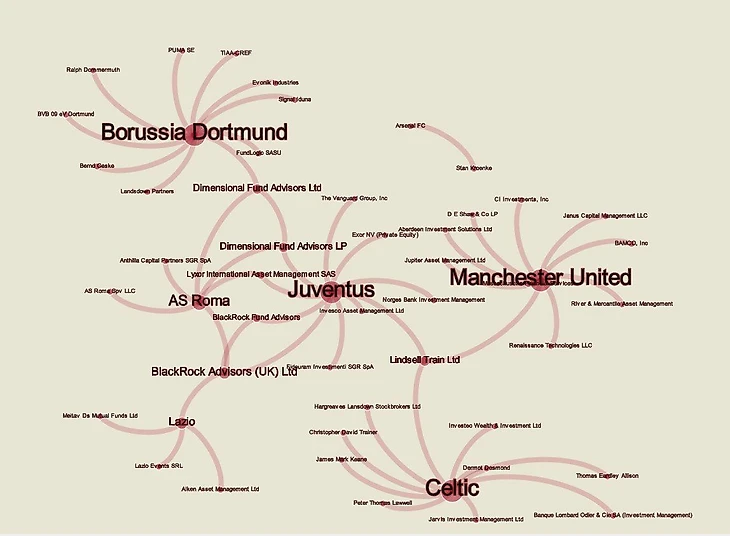 ❗️На «Селтик», «Лацио», «Рому», «Ювентус», «МЮ», «Арсенал» и «Боруссию» приходится 44 крупных владельца, некоторые из которых пересекаются.