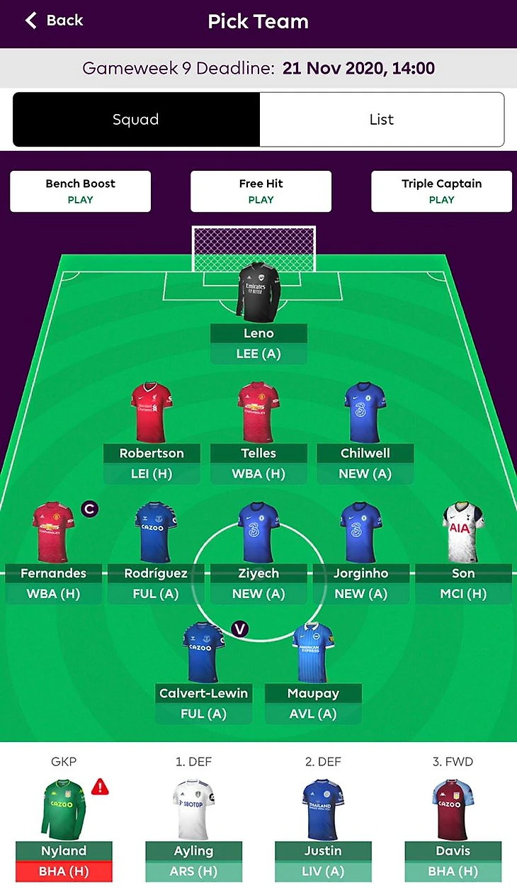 Короче говоря, в Обамеянге я разуверился еще два тура назад, но продать его не мог, потому что вынужден был заменять и травмированного Хамеса Родригеса, и выпавшего из состава Митчелла. Дальше стало еще веселее, потому что трансфер и выбор капитана перед прошлым туром я случайно пропустил, поэтому пришел к девятому туру с двумя бесплатными трансферами.