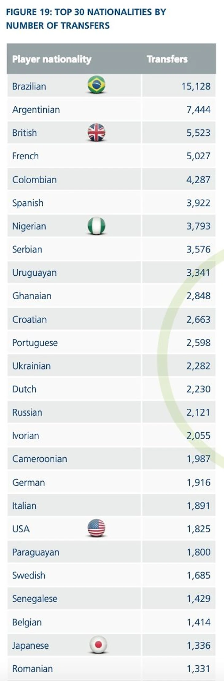 Внезапно (не знаю, как для вас, но для меня точно) в оба списка залетела Гана. За 10 лет трансфер провернули почти с 3000 африканскими парнями. Сумма всех сделок составила 561,8 млн долларов. Для сравнения, за 2121 футболиста с российским паспортом покупатели заплатили точно меньше 333 млн долларов (это цифра Чехии, упомянутой в рейтинге последней).