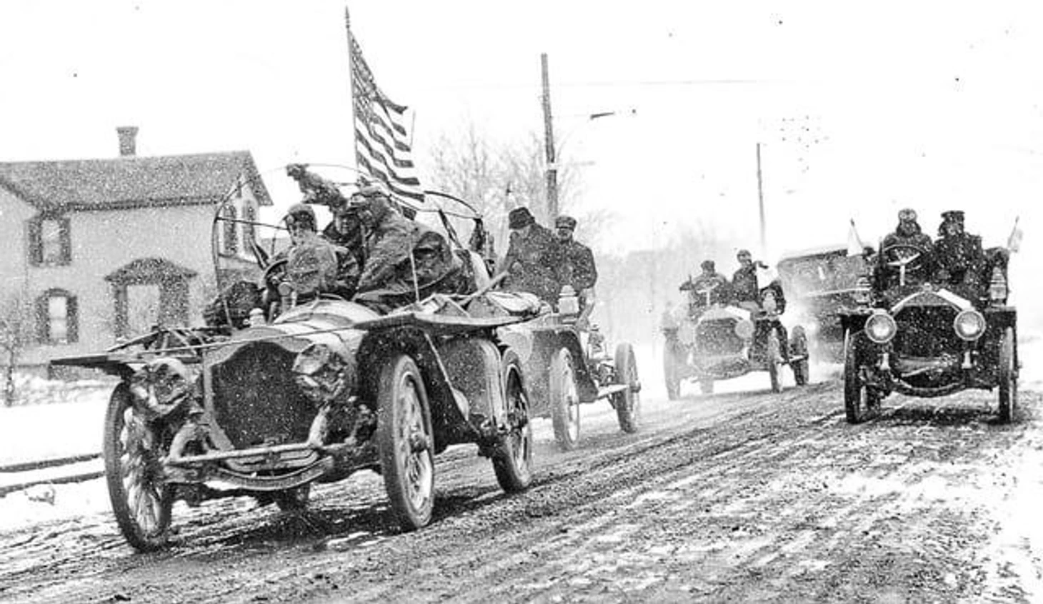 США: страна, где дороги ещё не родились. Америка встретила гонщиков суровой зимой. От Нью-Йорка до Чикаго снег, грязь, отсутствие асфальта. В Айове Thomas Flyer провалился в сугроб и простоял там сутки. В Небраске пересекал реки по льду. В Вайоминге ехал по рельсам, потому что дорог не было вовсе.
