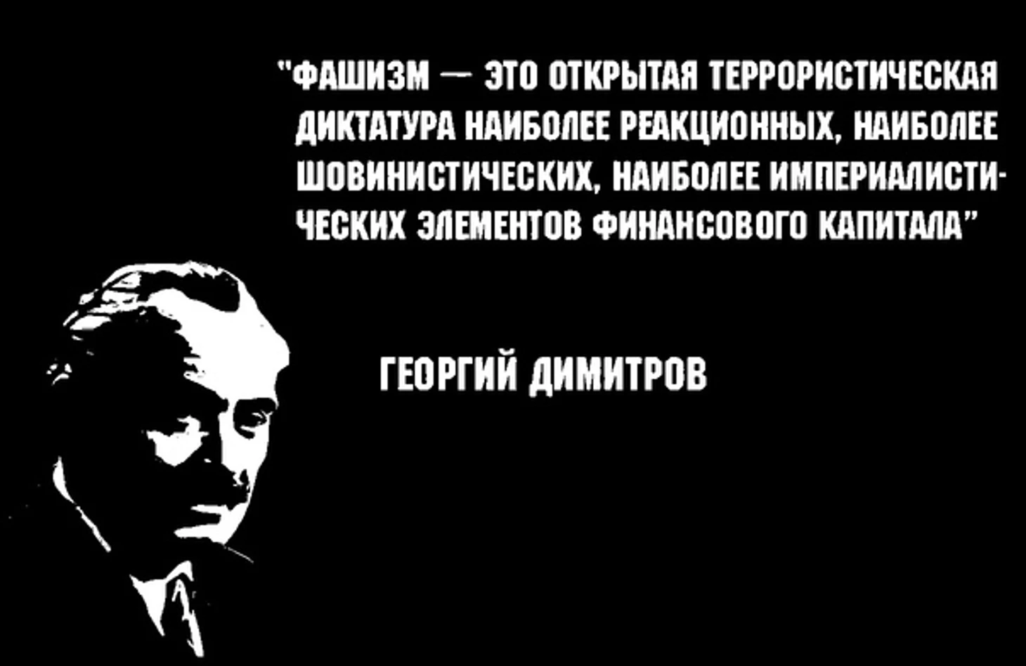 У нас есть классическое определение фашизма от Георгия Димитрова: «Фашизм – это власть самого финансового капитала. Это организация террористической расправы с рабочим классом и революционной частью крестьянства и интеллигенции. Фашизм во внешней политике – это шовинизм самой грубейшей формы, культивирующий зоологическую ненависть против других народов».