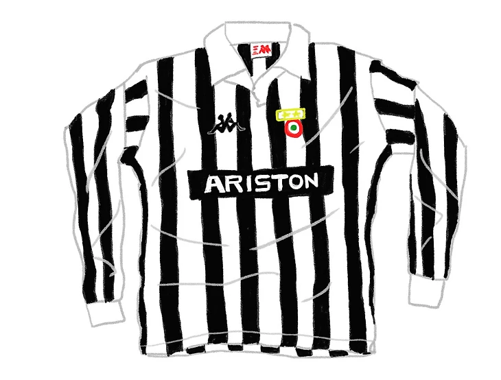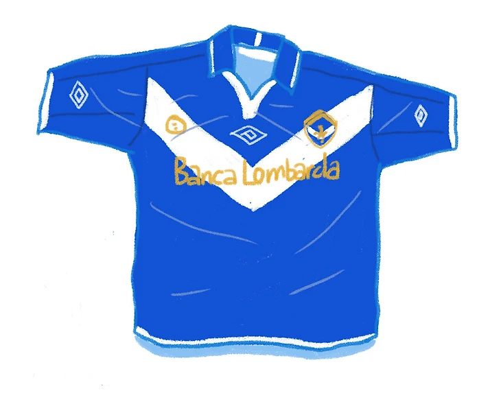 Большой шеврон по центру майки или если сказать более изысканно по-итальянски: «Ласточкин хвост». Типичный пример, майка «Брешии», которую носил другой «Божественный хвостик» Роберто Баджо.