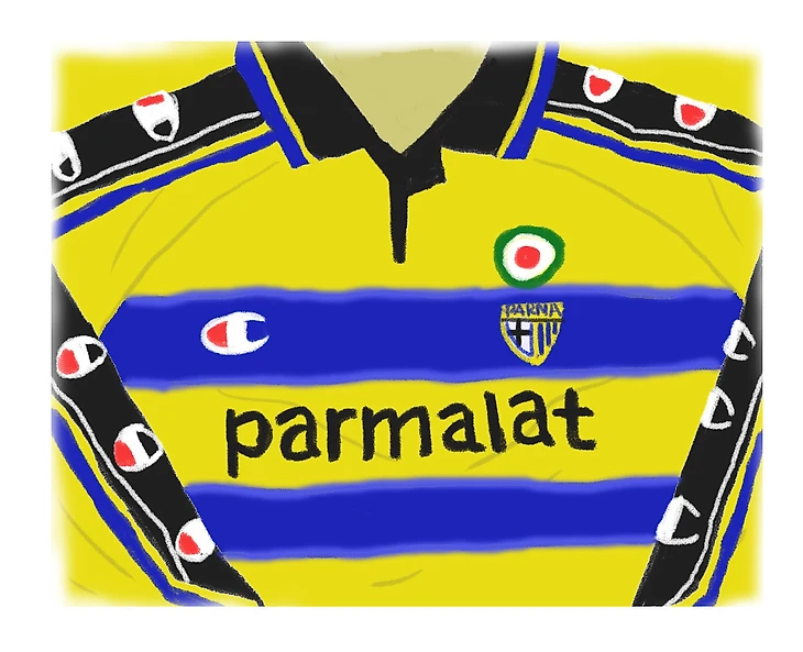 Горизонтальные полосы «Пармы» из безмятежных дней клуба. Футболка, которую носили невероятно талантливые игроки: Каннаваро, Креспо, Кьеза, Верон, Тюрам, Асприлья и Дино Баджо