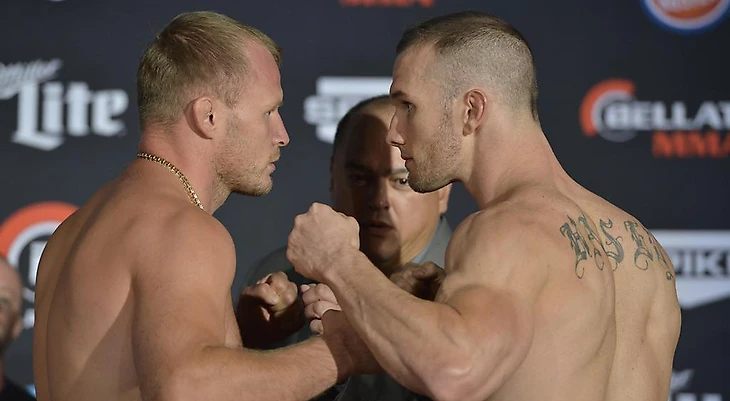 Александр Шлеменко задолжал Брендону Хэлси хороший бой. В сентябре 2014 года Брендону понадобилось всего 35 секунд, чтобы удушить Александра и отобрать у него пояс чемпиона Bellator в среднем весе. Шлеменко с тех пор провел 6 боев, выиграв 5 (1 бой официально признан несостоявшимся). Хэлси – 3, проиграв 2 из них. Известно, что у физически очень мощного Хэлси проблемы со сгонкой веса, но Александр – не тот человек, которого перевес даже в несколько килограммов вынудит отказаться от боя.