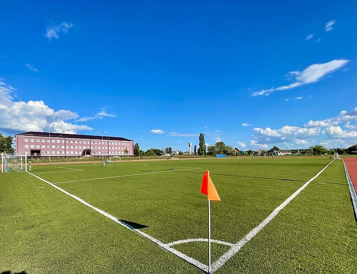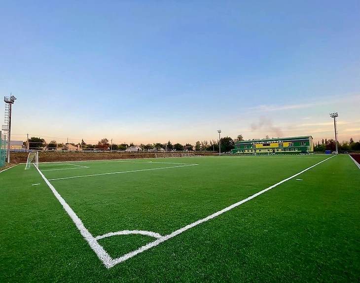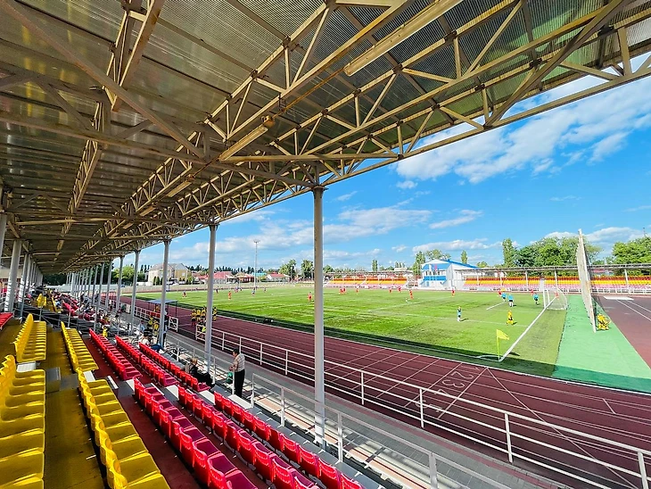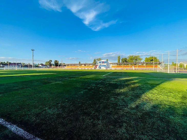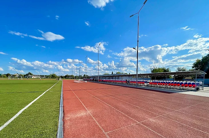 Далее вашему вниманию представляется стадион, который расположен в п.г.т. Подгоренский. Стадион был реконструирован и в обновленном виде начал функционировать в 2022 году, на данный момент обладает следующими техническими характеристиками: вместимость трибуны - 250 мест, размер поля - 90х60 м., покрытие - искусственное, установлены четыре прожектора по углам поля. Матчи на данном поле проводят местные команды в локальных турнирах.