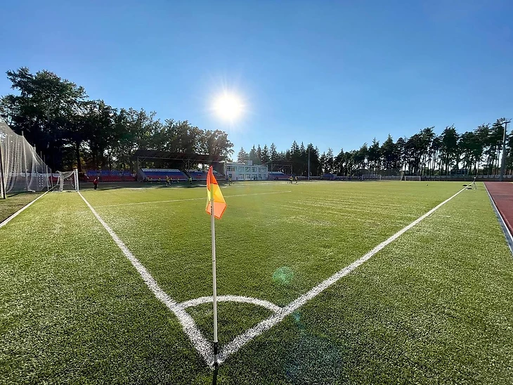 Далее следует стадион «Анна» из одноимённого посёлка. Стандартного размера поле с искусственным газоном и освещением, на противоположной от технической зоны стороне расположилась вместительная трибуна для местных любителей футбола. Отдельного упоминания достойно расположение стадиона. Поле находится в городском парке и окружено деревьями, что добавляет ему антуража. Свежий воздух, потрясающие виды и игра любимой команды - что может быть лучше?