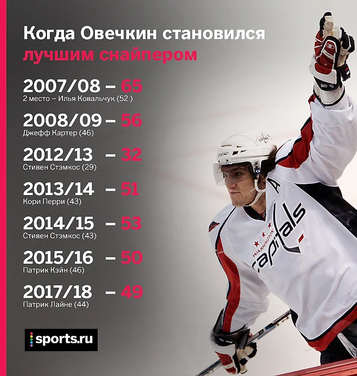 Помимо Овечкина, только Бобби Халл семь раз становился лучшим снайпером сезона в НХЛ. С того момента, как в лиге появился трофей «Морис Ришар», никто не выигрывал его больше двух раз. Кроме Овечкина.