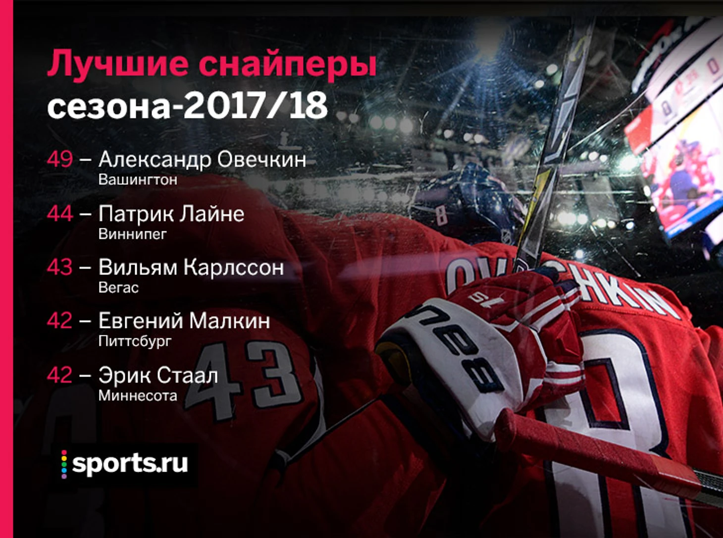 В ночь на воскресенье Александр Овечкин сделал дубль в матче с «Нью-Джерси», завершил регулярку с 49 голами и снова стал лучшим снайпером. Финн Лайне отстал на пять шайб, а швед Карлссон и Евгений Малкин, которые преследовали Александра в последние недели, забросили еще меньше.