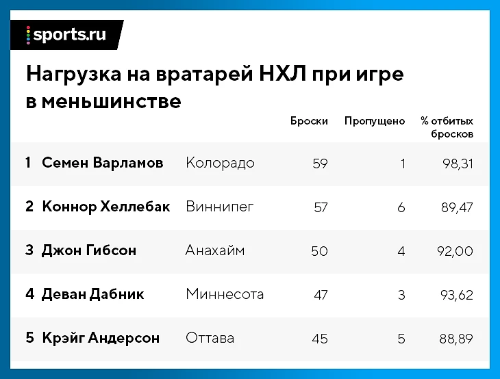 Молодые нападающие денверцев, пересекая красную линию, творят с шайбой невероятные вещи, но защитники команды прогрессируют не так быстро. Жирар легко может выбросить шайбу из-за ворот на клюшку чужому, а Задоров – увлечься силовым приемом, пропустить на пятак двух соперников или удалиться. Опытные Коул, Джонсон и Бэрри тоже неидеальны, а отдуваются за них вратари. Варламов отбил больше всех бросков в НХЛ, когда его команда играла в меньшинстве, и за эти 59 минут пропустил одну шайбу. У него уже несколько спасений после выходов один на один и пара таких матчей, после которых начинаешь задумываться, а точно ли Бобровский – номер один среди русских вратарей?